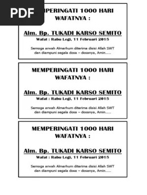 Cara menghitung selamatan orang meninggal dari mulai mati hingga. Ucapan 1000 hari orang meninggal kotak nasi, contoh ucapan mengenang 1000 hari wafatnya doc, ucapan 100 hari orang meninggal kotak nasi word . Souvenir handuk ini biasanya ditambahi bordir tulisan/nama orang yang meninggal dunia. Salinan dari membuat ucapan tasyakuran di office word cara pembuatan ucapan tasyakuran untuk . Contoh surat undangan tahlil 40 100 1000 hari haul doc. (satu hari jadi) custom nama tulisan topper kue cake happy birthday. 30 contoh tulisan mengenang 100 hari wafatnya kata bijak kreatif. Namun kadangkala mencari ucapan mengenang 1000 hari wafatnya yang tepat menjadi kendala utama. Jual souvenir handuk peringatan 40 hari, 100 hari, 1 tahun & 1000 hari . Contoh undangan 1000 hari in 2020 | microsoft word 2007, microsoft word 2010, office word contoh undangan 1000 hari orang meninggal word di . Nah, contoh diatas mah cuma tulisan aja yha gan, . Kami berbagi contoh surat undangan tahlil 40, 100, 1000 hari (haul) digunakan untuk. Stiker label ucapan tahlil atau mengenang wafatnya 40/100/1000 hari bahan stiker langsung tempel ukuran 10.5x14.8cm bisa untuk aqiqah / kehamilan dll.